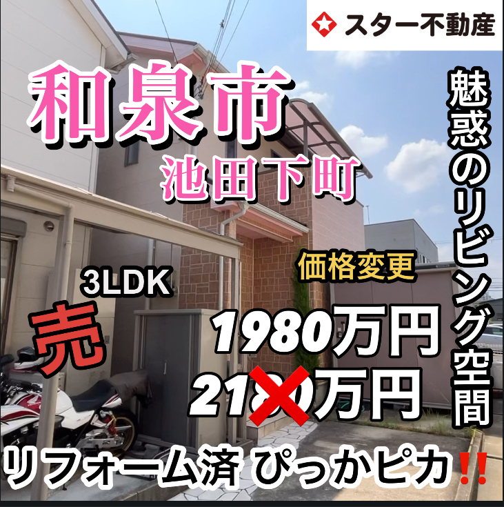 価格変更‼️ 【魅惑のリビング お風呂洗面化粧台は新調 和泉中央駅まで15分 一戸建て】
