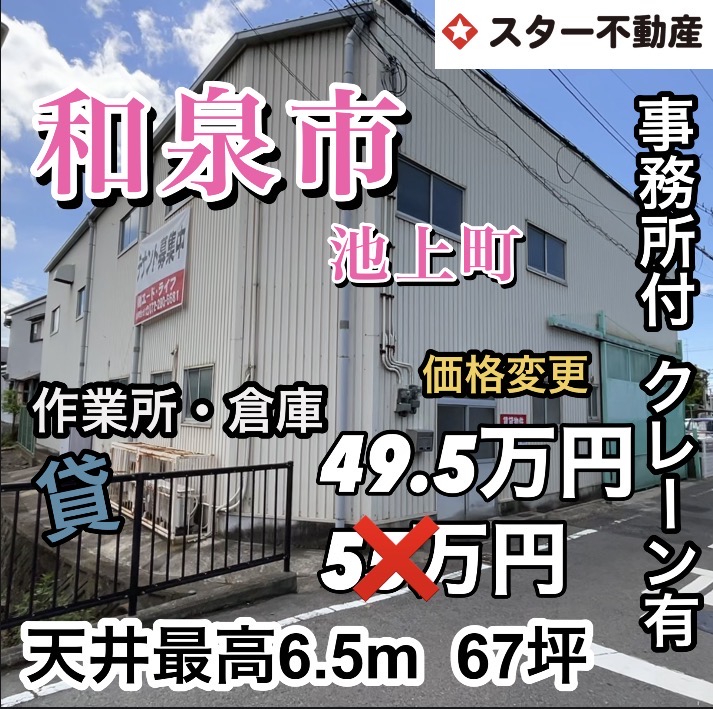 ブログ Blog トップページブログページお知らせ価格変更【天井最高6.5m 倉庫・作業所 事務所有り クレーン付き 和泉市 第二阪和道路入ってすぐ】 2026年3月8日 お知らせ 価格変更【天井最高6.5m 倉庫・作業所 事務所有り クレーン付き 和泉市 第二阪和道路入ってすぐ】 前へ一覧へ