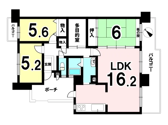 3LDK 専有面積62.80㎡ バルコニー8.76㎡