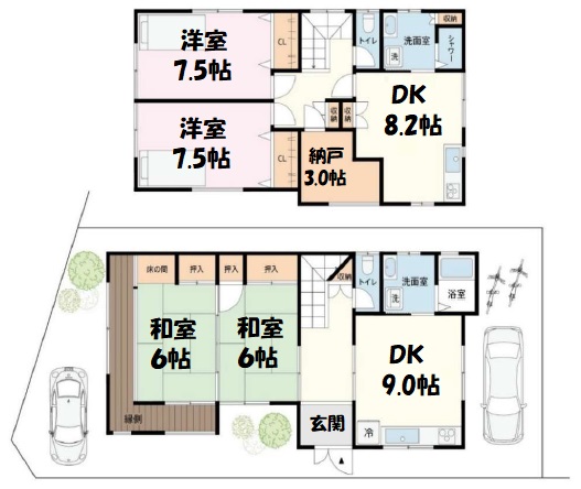 土地面積 約61.11坪 2面道路 駐車3台可能