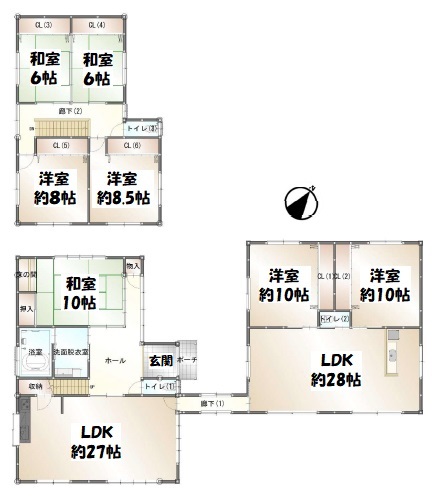 トイレ3ヶ所 1.5坪の大きな浴室 収納豊富