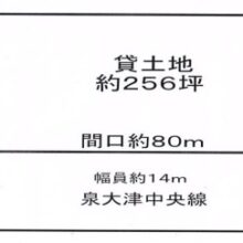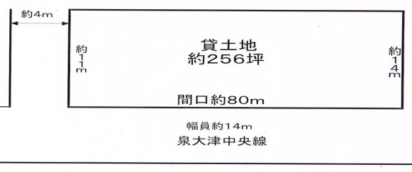 土地面積約256坪 道路幅員約14m 土地間口約80m