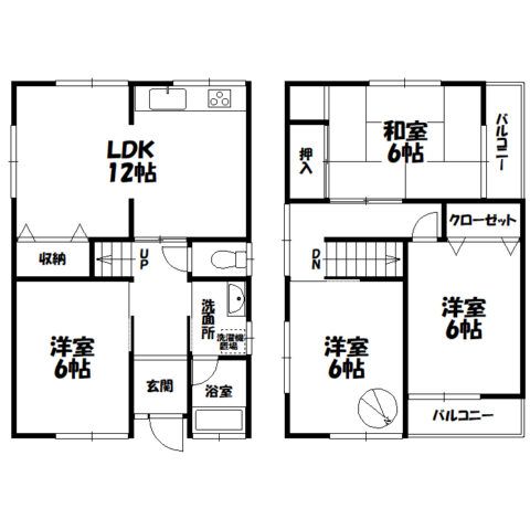設備・条件 IHコンロ・三口コンロ・システムキッチン・三点給湯・洗髪洗面化粧台・シャワー・バス・トイレ別・床下収納・室内洗濯機置き場・都市ガス・公営水道・下水・電気・バルコニー