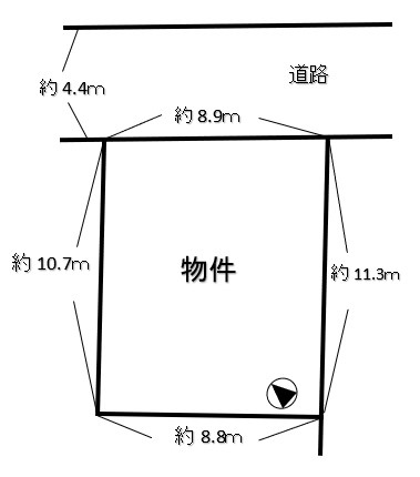 角地 /北東 間口8.9m 幅員4m 公道 |