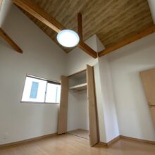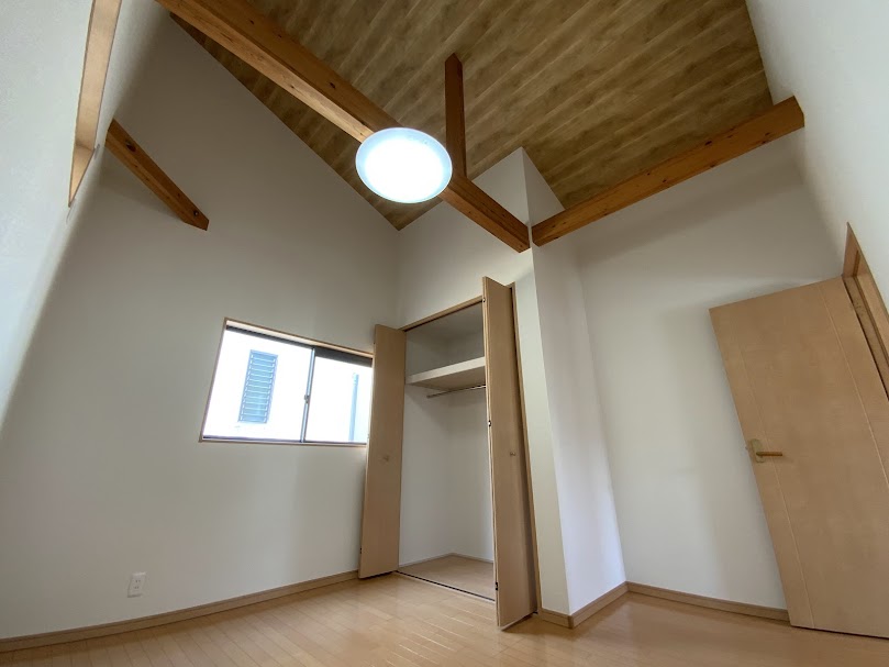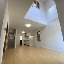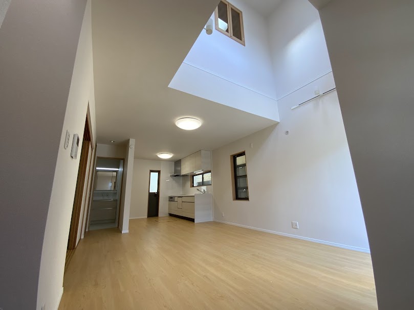 1階リビングには吹抜けが有り、2階洋室は勾配天井になっており、開放感のある空間が魅力のお家です。 |