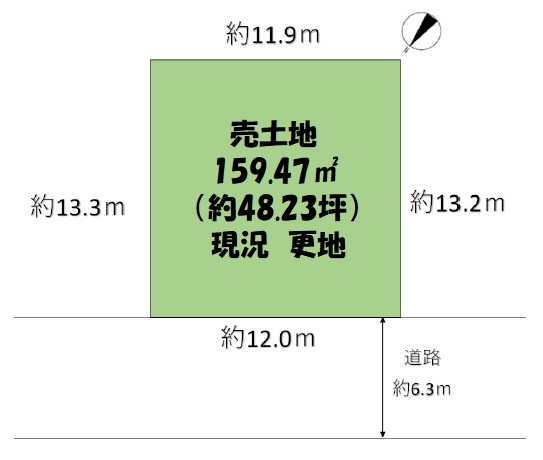 土地面積 159.47㎡ 約48.23坪 きれいな整形地
